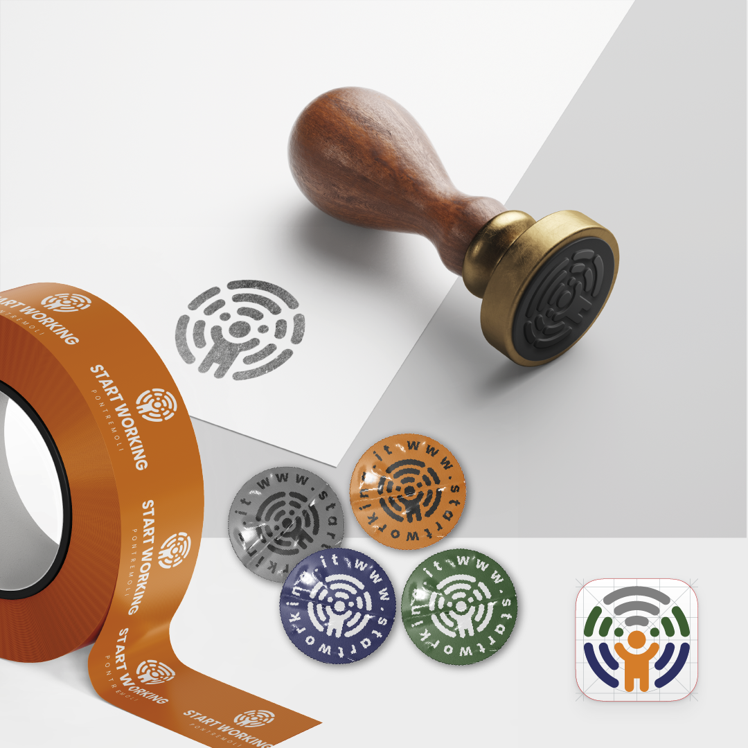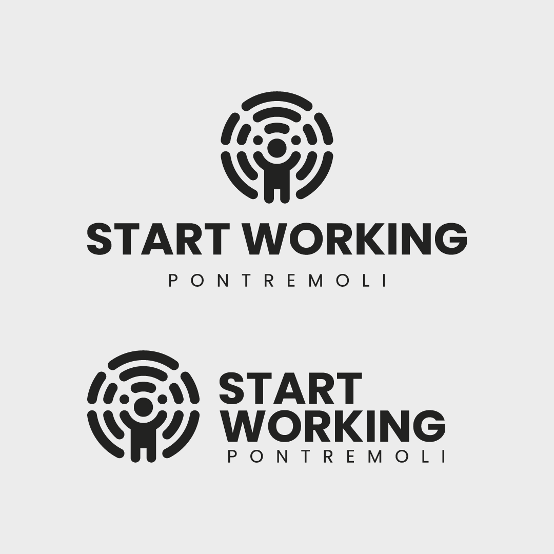 "La scelta del carattere Poppins è stata motivata dalla sua modernità e versatilità, ideale per rappresentare una comunità dinamica e orientata al digitale come Start Working. Con le sue linee pulite e la sua leggibilità impeccabile, Poppins aggiunge un tocco di freschezza e vivacità al logo, riflettendo la costante ricerca di innovazione e connessione. L'equilibrio tra forme geometriche e proporzioni armoniose di Poppins incarna perfettamente filosofia di design, in cui la forma segue la funzione e ogni elemento contribuisce alla coesione visiva del marchio. Con Poppins, le idee si trasformano in azione, dando vita a un'esperienza visiva coinvolgente e memorabile per la comunità di coworking." La distanza tra il pittogramma e il testo, così come l'altezza del carattere Poppins Bold, sono calcolate con precisione utilizzando uno dei cerchi aurei impiegati nella costruzione del simbolo. Le proporzioni auree garantiscono un equilibrio visivo e un'apprezzabile armonia, enfatizzando la coesione tra il simbolo e il testo.